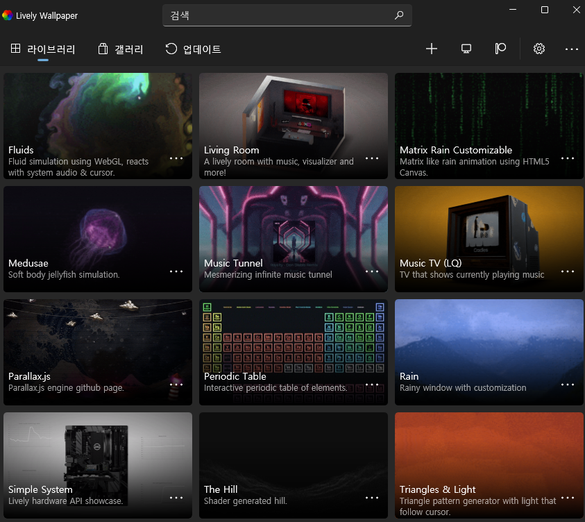 스팀보다 다양한 테마가 있지는않지만 움직이는 바탕화면을 체험해 볼 수 있다.